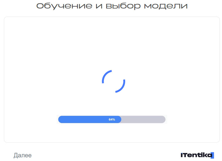 Следующий экран демонстрирует процесс обучения, выбора и настройки модели машинного обучения. Для каждого типа задач (решение поддерживает регрессию, бинарную и мультиклассовую классификации) определены типы моделей, которые последовательно обучаются на тренировочном наборе данных. Также из тренировочного набора данных предварительно выделяется валидационный набор, на котором считаются метрики качества модели. Вывод этих метрик осуществляется на следующем экране.
