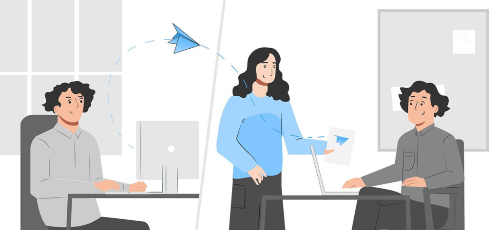 Поскольку здесь команда бухгалтерии уже гораздо малочисленнее, классические «ритуалы» между отделами неизбежно нарушаются. Согласно инструкции, например, из отдела выдачи справок нужно написать письмо, зафиксировать его в реестре исходящих документов, а потом получить письмо в отделе регистрации сотрудников и отметить факт получения в реестре. Но если функции обоих микроотделов выполняет один и тот же человек, процесс выглядит абсурдно.