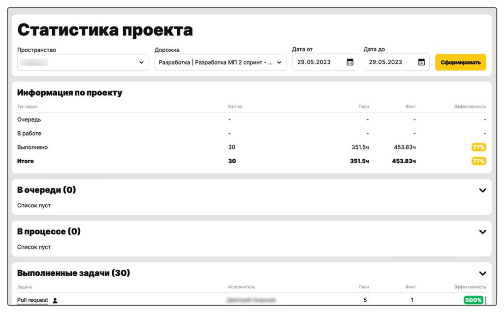 Работая с задачами, исполнители запускают таймер в карточке и обязательно указывают в комментарии, что именно они делали в указанное время. Все это формируется в отчет о фактически затраченном времени.