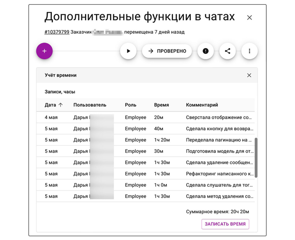 Как я уже говорил, нам нужно было фиксировать время работы с задачами, чтобы понимать рентабельность проектов и эффективность работы сотрудников.