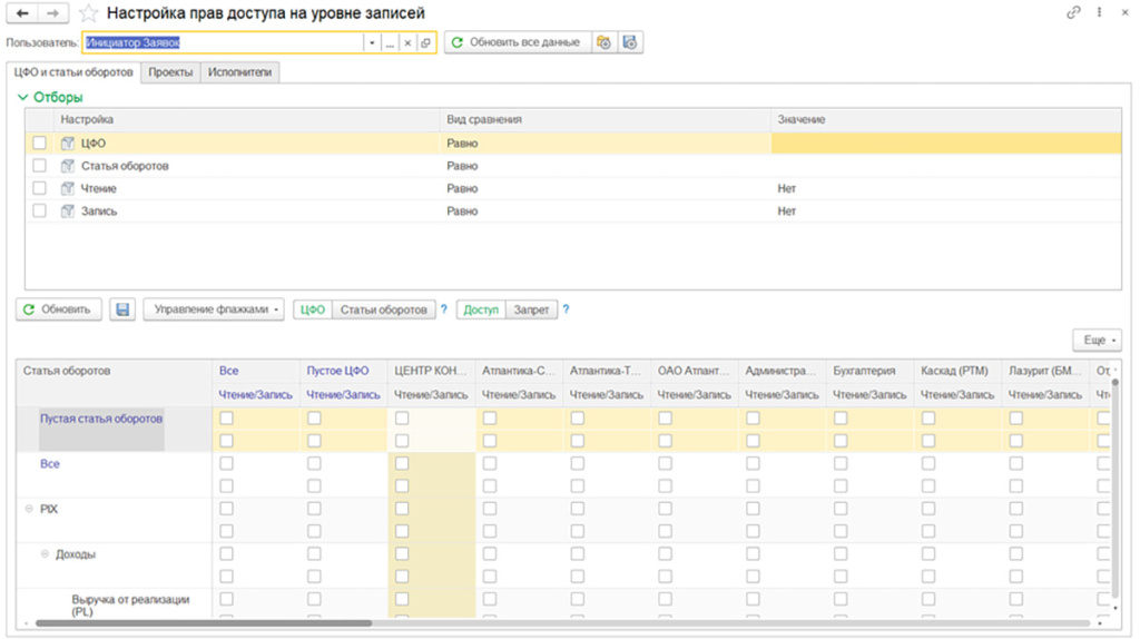 Настройка прав доступа на уровне записей