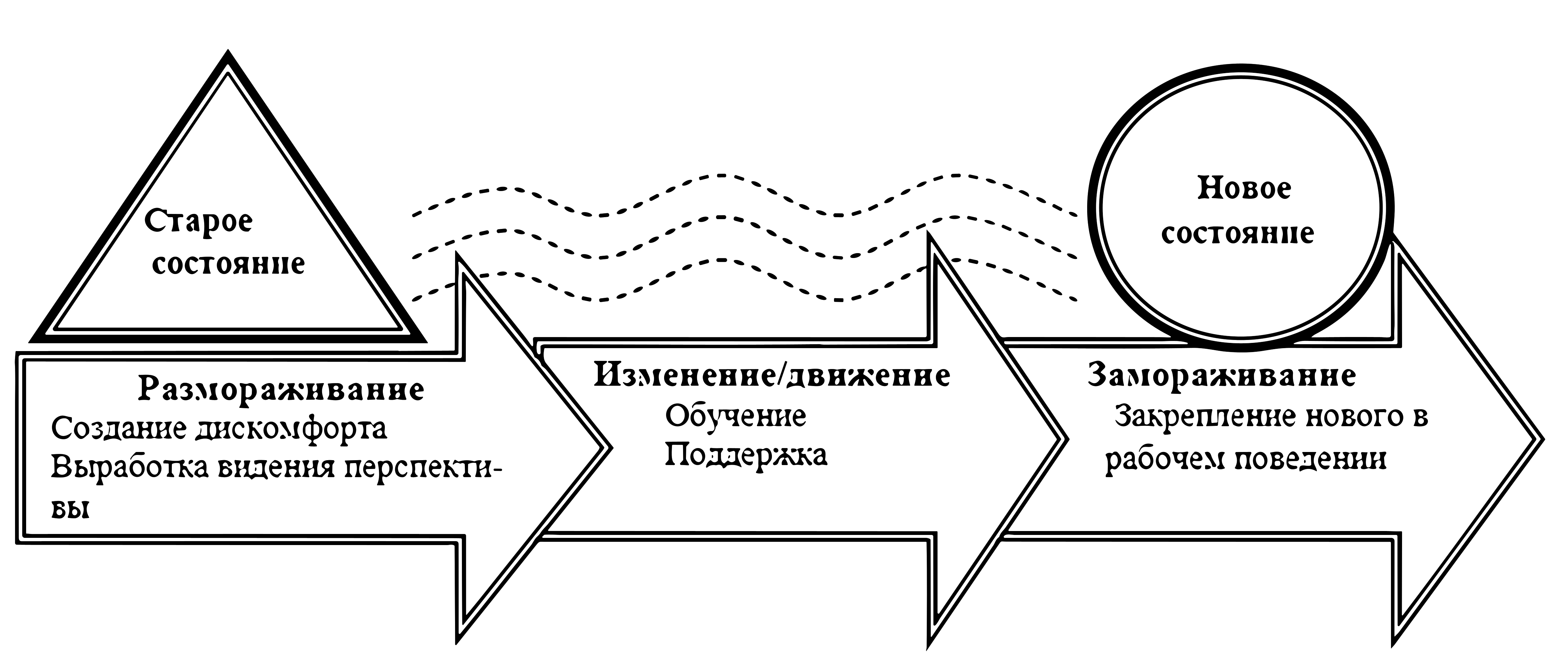 Одной из наиболее популярных моделей разработки и реализации организационных изменений является трехфазная модель Курта Левина: «размораживание–изменение–замораживание».