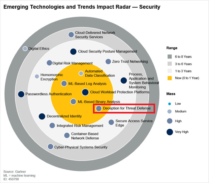 В 2020 году Gartner назвала Deception наиболее важной новой технологией защиты информации, и указала, что технология достигнет зрелости уже в течение года.