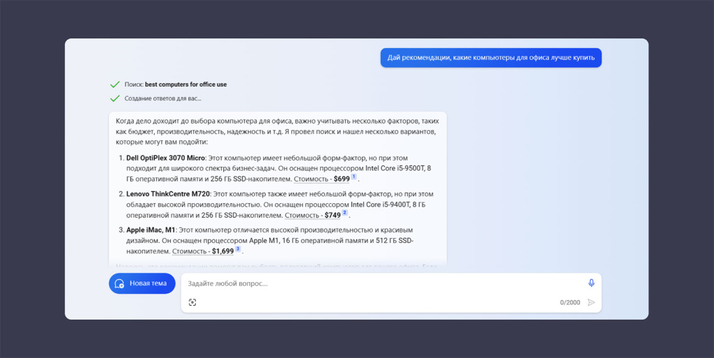 Чат-бот Bing, интегрированный с Microsoft Edge. Источник: Compass