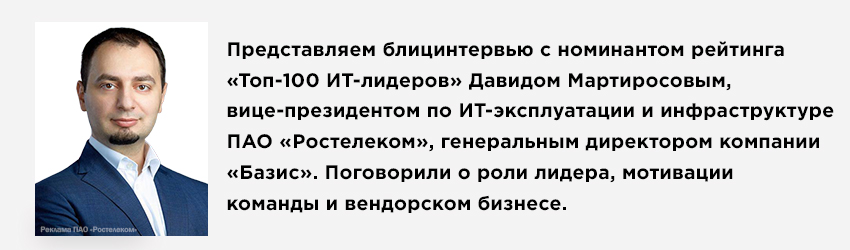 Давид Мартиросов, вице-президент по ИТ-эксплуатации и инфраструктуре ПАО «Ростелеком», генеральный директор «Базис»