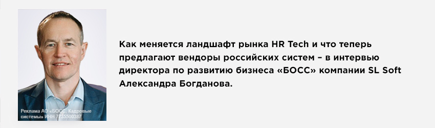 Мы обновили сеть партнеров «БОСС», которые специализировались на внедрении западных HR-систем на базе SAP/Oracle, а теперь внимательно смотрят на «БОСС», как на решение, которое способно импортозаместить иностранные продукты у крупнейших российских предприятий. И нам важен их опыт бизнес-консультантов и специалистов, очень хорошо понимающих функциональные задачи крупных бизнес-заказчиков. Мы видим перспективу в том, чтобы комбинировать экспертизу, которую накопил «БОСС» при работе на российском рынке, и опыт наших партнеров, внедрявших зрелые западные HR-решения.