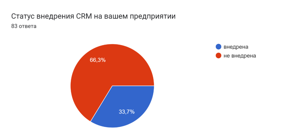 66,3% опрошенных признаются, что как таковой CRM системы на их предприятиях нет. 33,7% утверждают обратное.