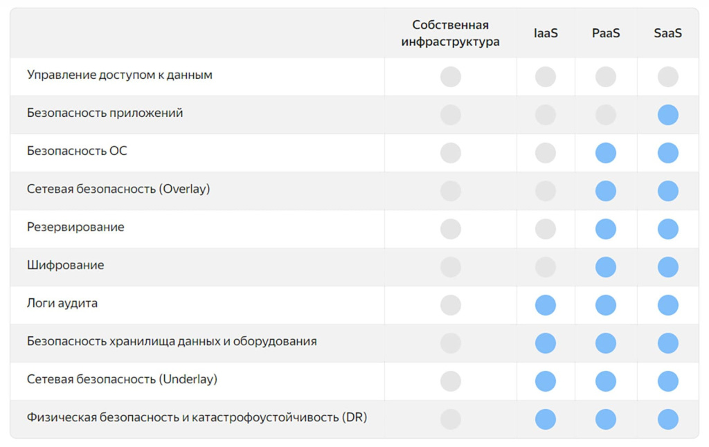 Серый круг – ответственность лежит на заказчике, голубой – на облачном провайдере.