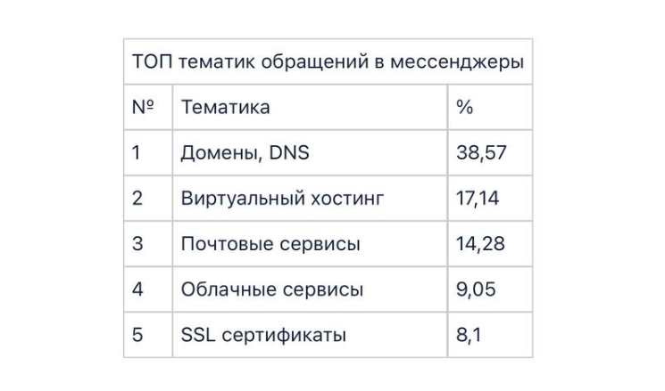 Наиболее часто пользователи интеллектуального чат-бота обращались за помощью по вопросам, связанным с доменными именами и настройками DNS.