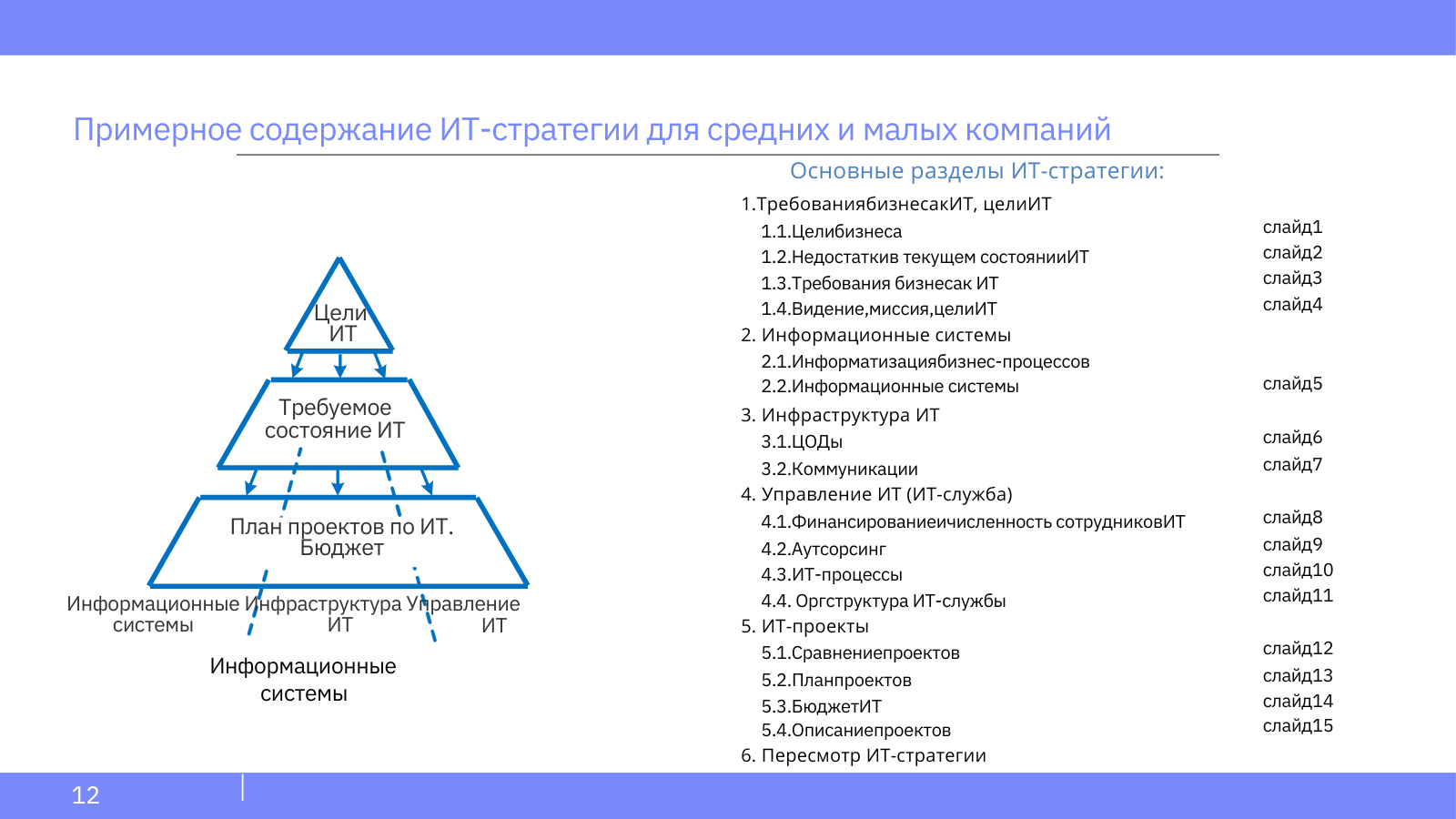 Пример ключевых разделов в ИТ-стратегии для малых и средних компаний.