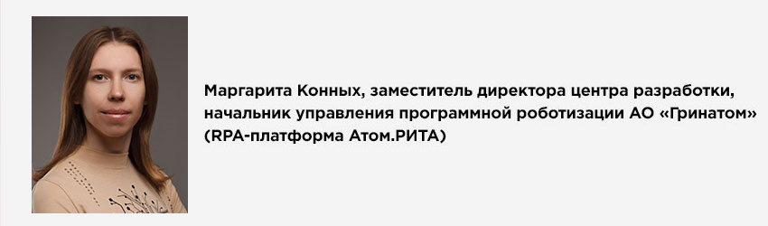 RPA все активнее внедряется как в крупных, так и в средних компаниях. Рост российского рынка программной роботизации не смог остановить даже уход западных платформ. Маргарита Конных, заместитель директора центра разработки, начальник управления программной роботизации «Гринатома», вендора и ИТ-интегратора атомной отрасли, рассказала об изменениях, происходящих на российском рынке RPA, о том, как внедрение роботизации помогает справляться с кадровым дефицитом и какие барьеры стоят на пути к успешной автоматизации бизнес-процессов.