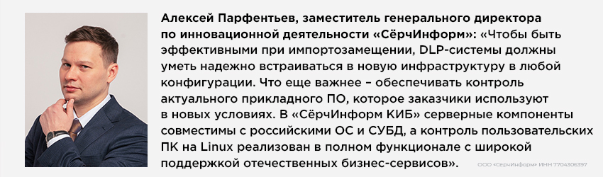 Чтобы быть эффективными при импортозамещении, DLP-системы должны уметь надежно встраиваться в новую инфраструктуру в любой конфигурации. Что еще важнее – обеспечивать контроль актуального прикладного ПО, которое заказчики используют в новых условиях.