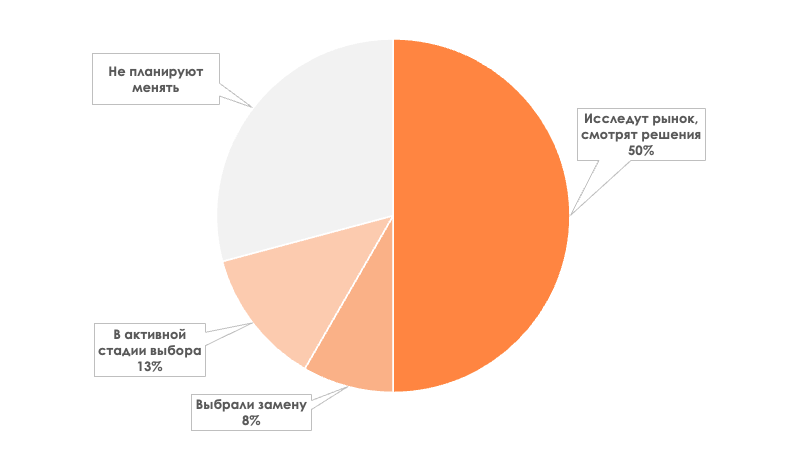 71% компаний, которые приняли участие в исследовании LDM в 2025 году, рассматривают возможность перехода на отечественные продукты, но еще не приняли окончательного решения. Теперь тех, кто планирует менять западные продукты, большинство.