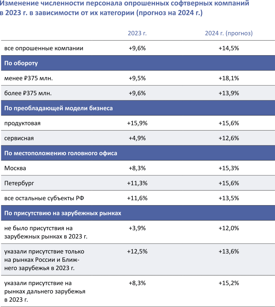 Совокупный штат российских софтверных компаний в 2024 г. снова растет более чем на 10%
