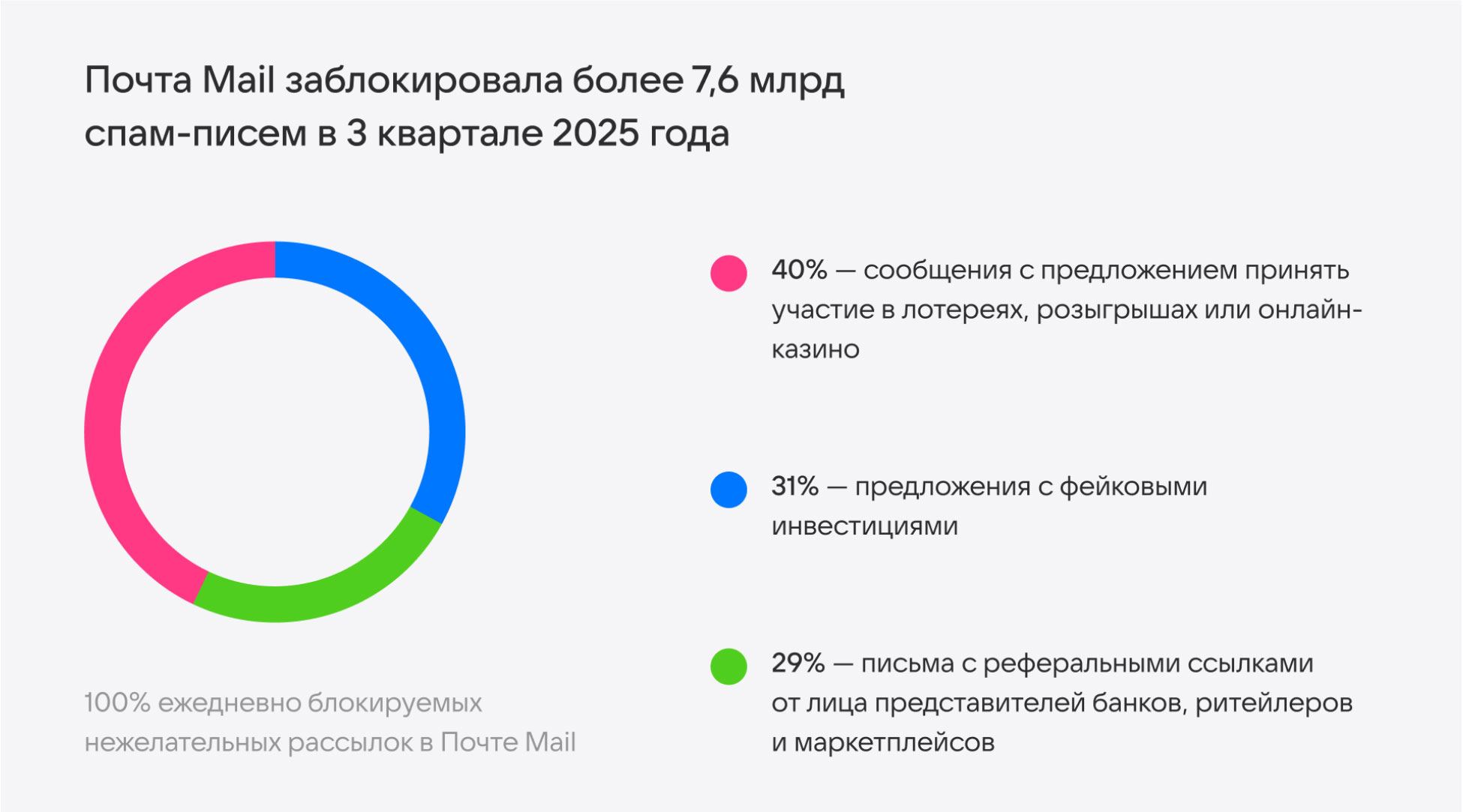 Почта Mail заблокировала более 7,6 млрд спам-писем и 4 500 доменов в 3 квартале 2025 года