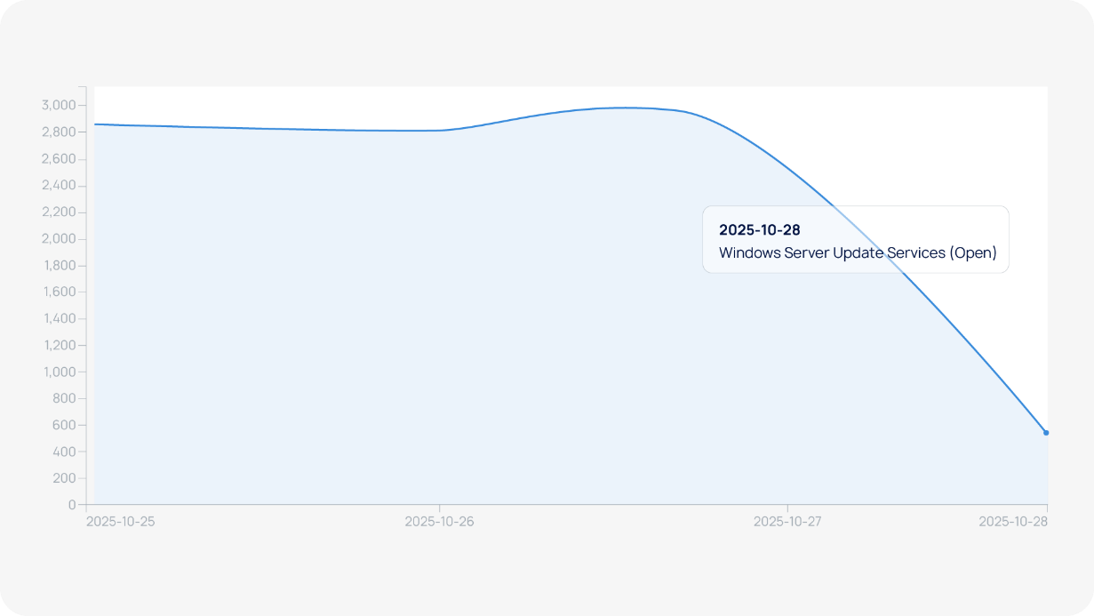 По данным Microsoft, уязвимость затрагивает только серверы, где активирована роль WSUS. После выхода патча 14 октября компания выпустила внеплановое обновление 23 октября, так как устранение оказалось неполным. Уже 24 октября зафиксированы массовые сканирования сети на наличие уязвимых серверов и первые попытки компрометации.