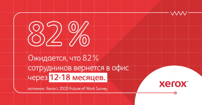 Исследование Xerox о будущем работы: 82% сотрудников могут вернуться в офисы через 12–18 месяцев. 600 ИТ-руководителей из пяти стран поделились планами по развитию гибкой рабочей среды после пандемии