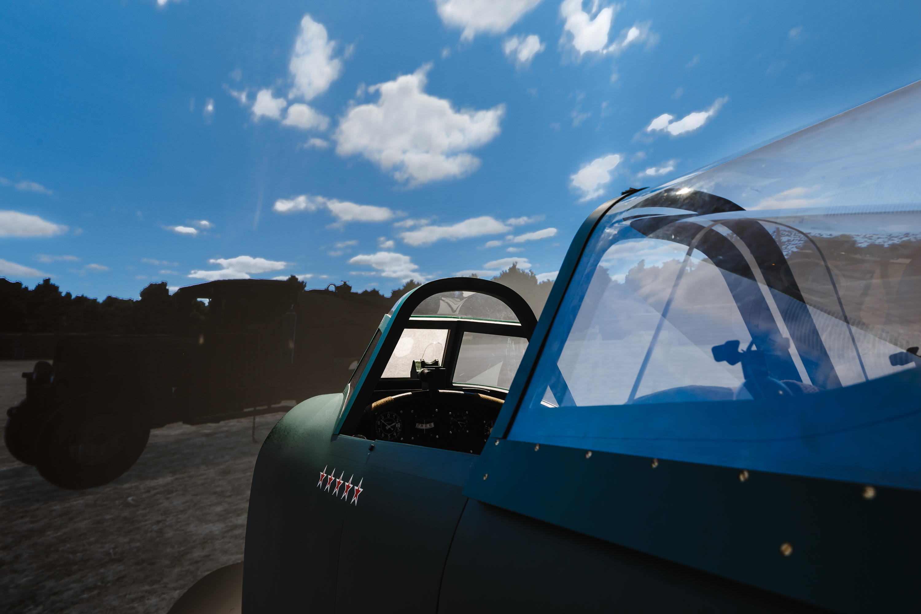На втором этаже музея находится самая технически сложная инсталляция «Боевой вылет». Находясь в полноразмерной копии кабины советского истребителя Як-9, посетители имеют возможность почувствовать себя настоящими боевыми лётчиками и стать участниками воздушного боя.