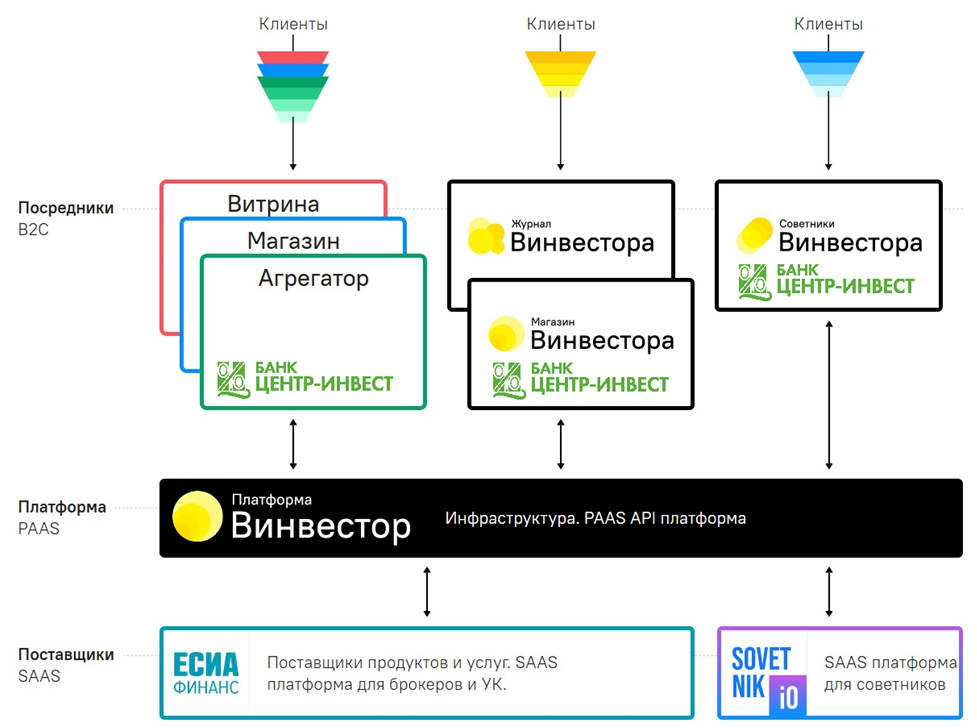Ранее в 2020 году был реализован Магазин Винвестора – мультибрендовый магазин финансовых продуктов от различных поставщиков для совершения операций с инвестиционными инструментами. Данный магазин является частью вышеупомянутой экосистемы, в которую также входит:
