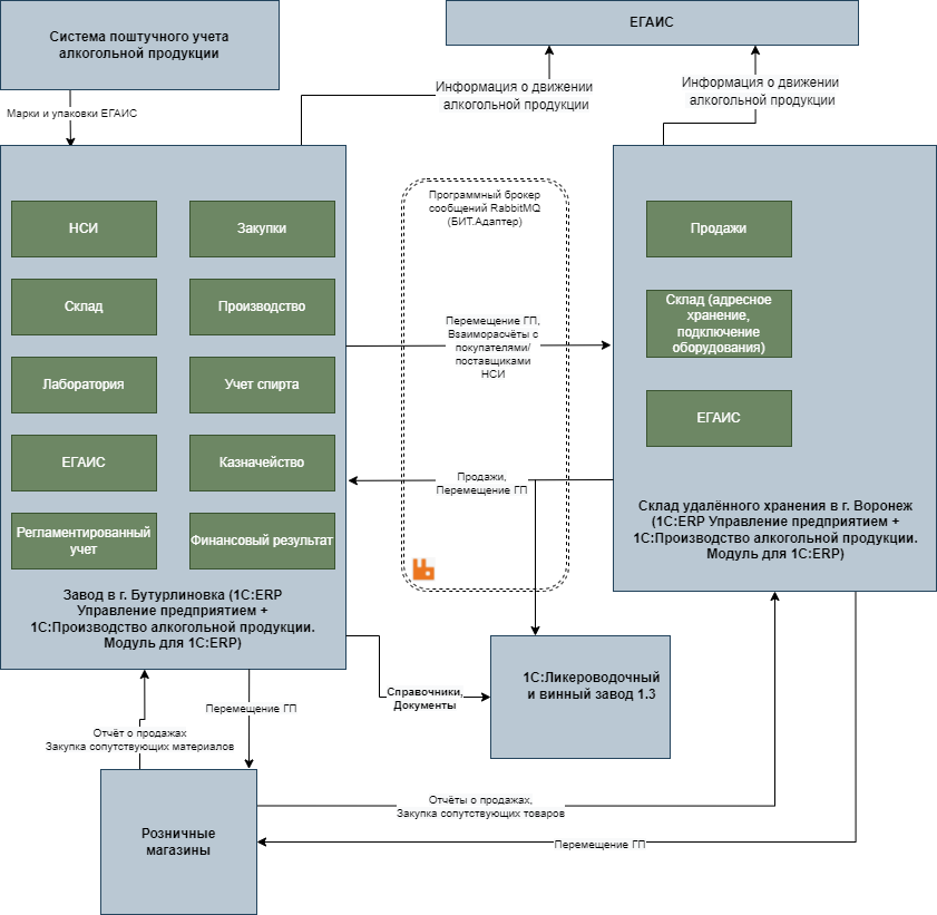 Переход старейшего ликеро-водочного завода России на 1С:ERP с использованием брокера сообщений RabbitMQ