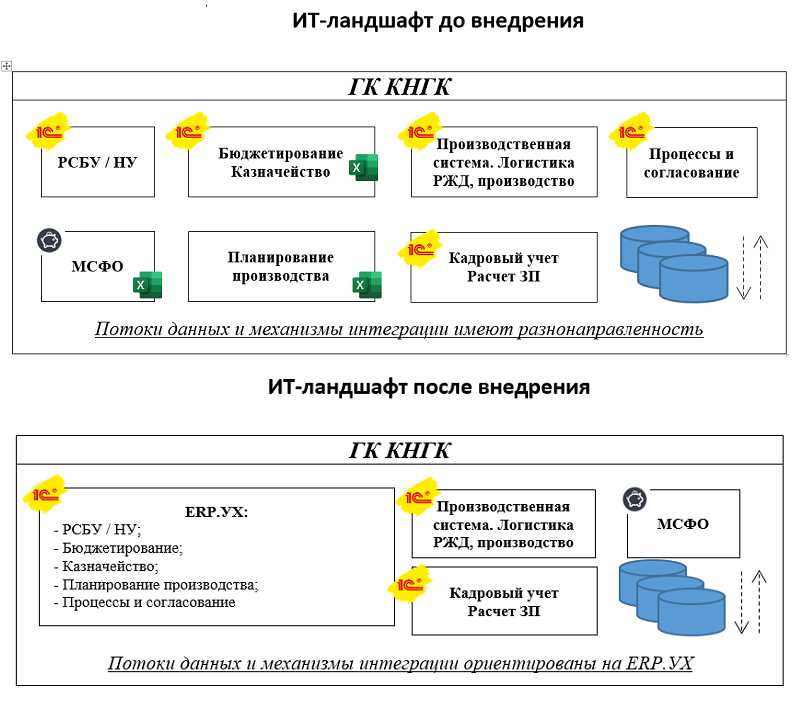 - Внедренный продукт: "1С:ERP. Управление холдингом" – решение линейки бизнес-приложений системы 1С:Предприятие 8, объединяющее в едином продукте автоматизацию трех уровней управления:
