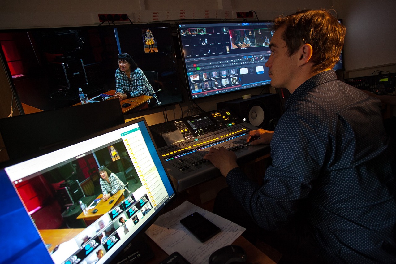 Аудитории были предоставлены несколькими факультетами: Актерский факультет, Театроведческий факультет, Продюсерский факультет, Танцевальный зал в учебном корпусе, Факультет звукорежиссуры.Техническое оснащение помещений включает:· Комплект профессионального видео оборудования· Систему специального освещения· Систему отображения информации· Звуковое оборудование· Оборудование аппаратных, рабочие станции и сервера для монтажа, хранения и выпуска программ.