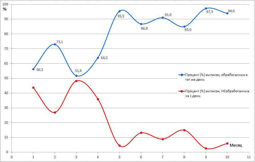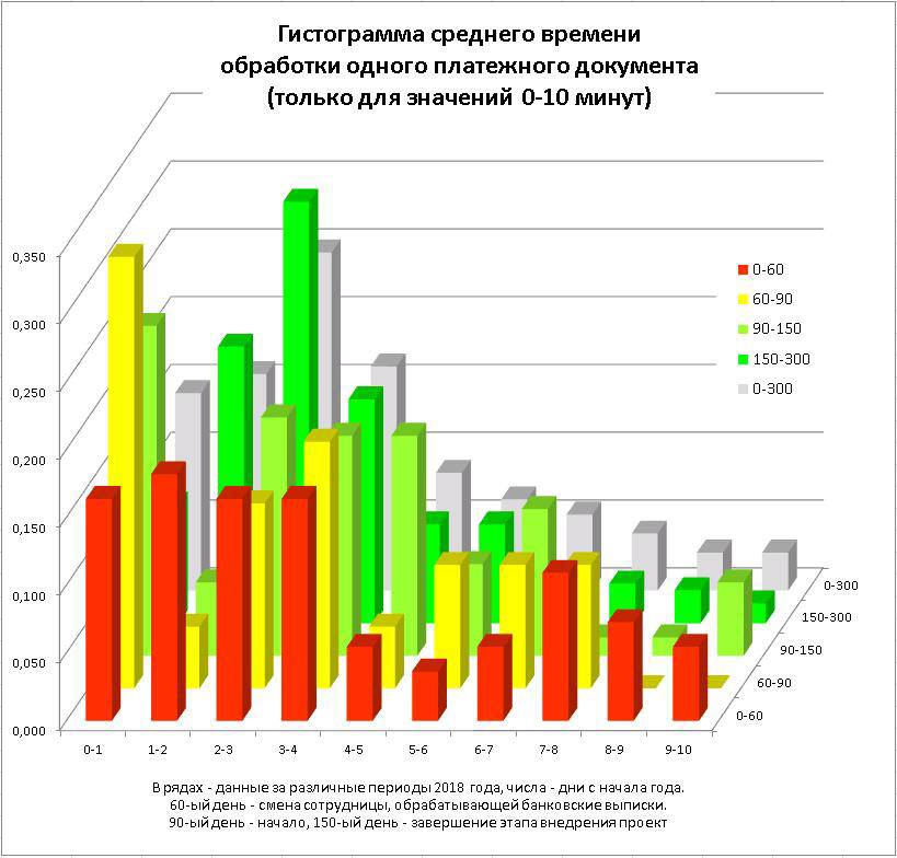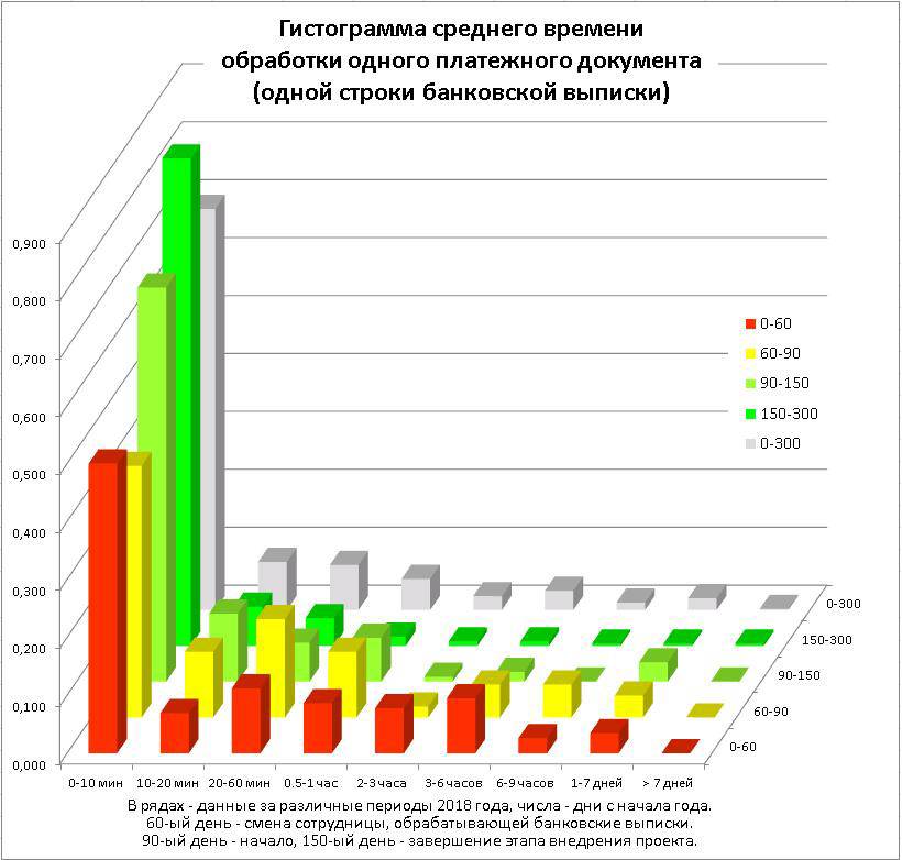 - 1 Гистограмма среднего времени обработки одного платежного документа.JPG2 Гистограмма среднего времени обработки платежного документа (для значений 0-10 минут).JPG3 Время обработки одной строки выписки (общая динамика).JPG4 Процент выписок окончательно обработанных в тот же день.JPG5 Динамика документооборота и оперативности его обработки.JPG