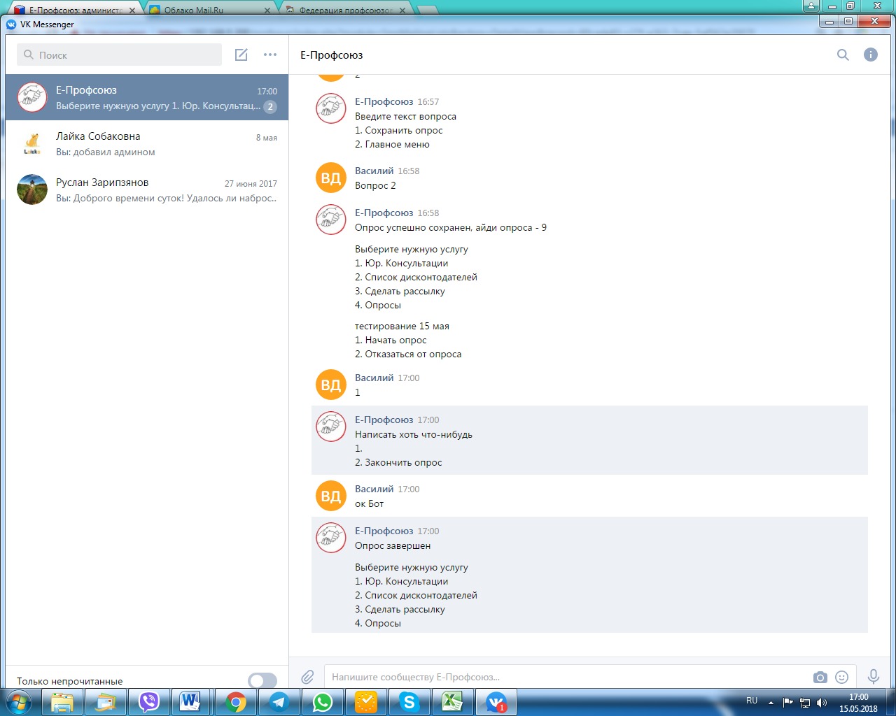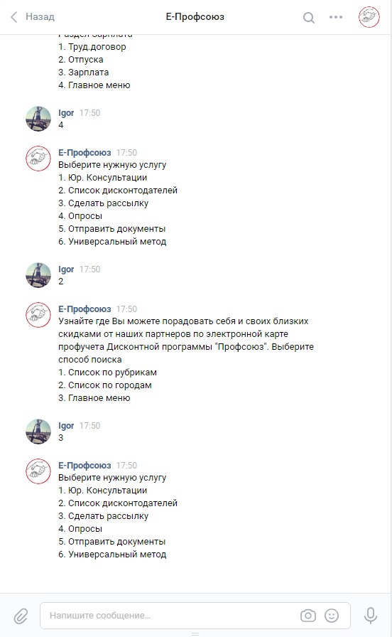 Чат-бот " Е-профсоюз" в Вконтаке и Viber