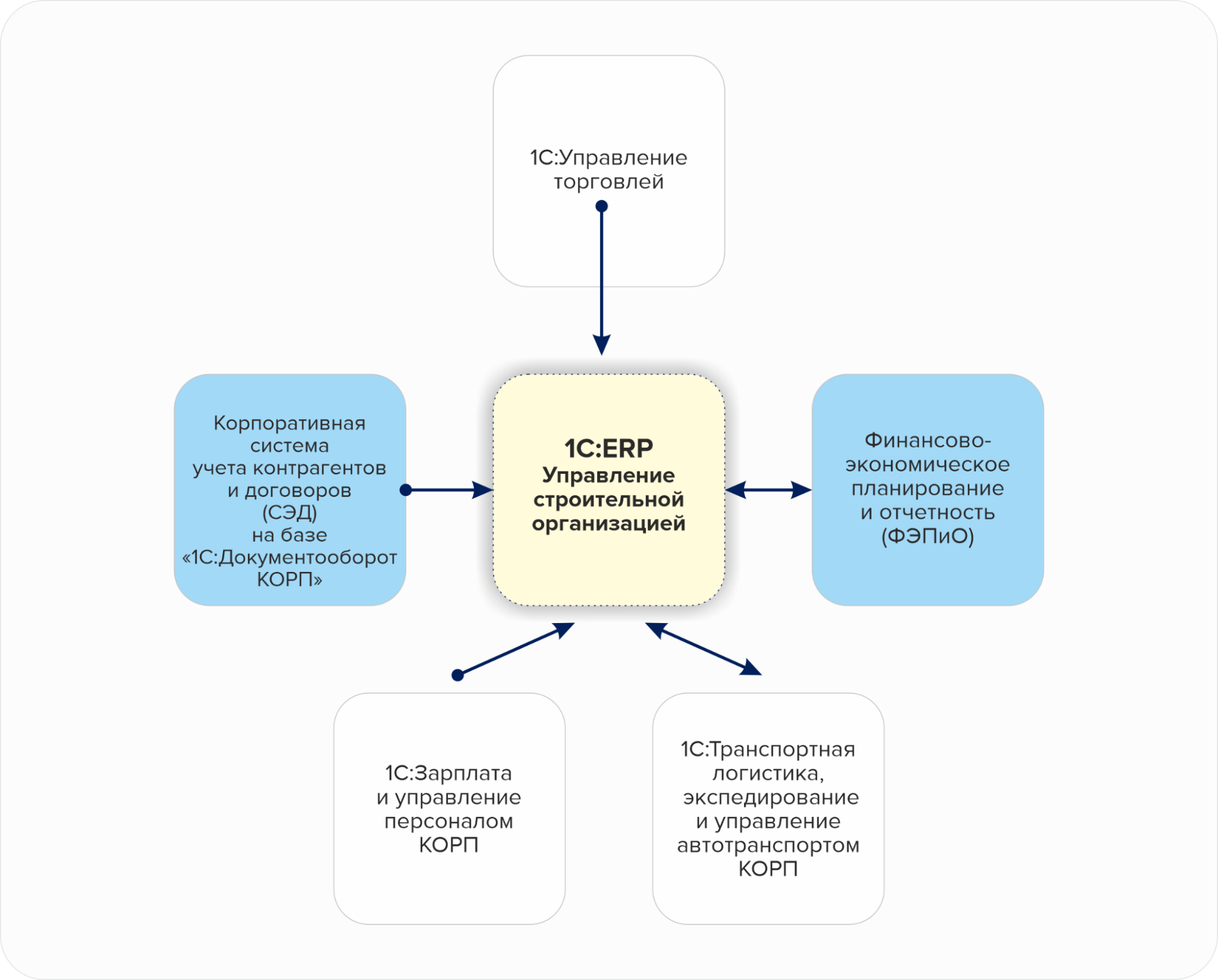Цель проекта: создание системы управления предприятием на базе платформы «1С:Предприятие 8» с интеграцией всех используемых подсистем для сокращения операционных и административных расходов и ускорения подготовки отчетности.