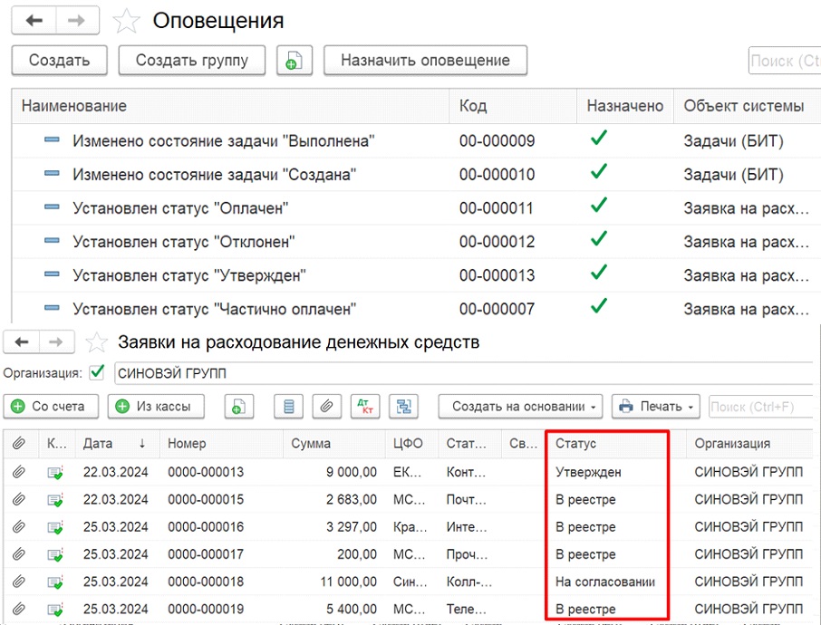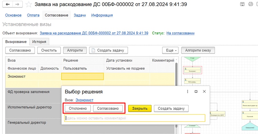 Сократилось время на согласование заявок на расходование ДС до 30 минут в день (если платежей много).