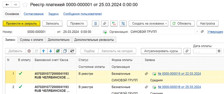 Все заявки на расходование денежных средств, подлежащие оплате, теперь находятся в одном месте – в реестре платежей. Платежи можно группировать или разносить по статьям бюджета и клиентам, что значительно снижает рутину и освобождает время (Рис. 2).