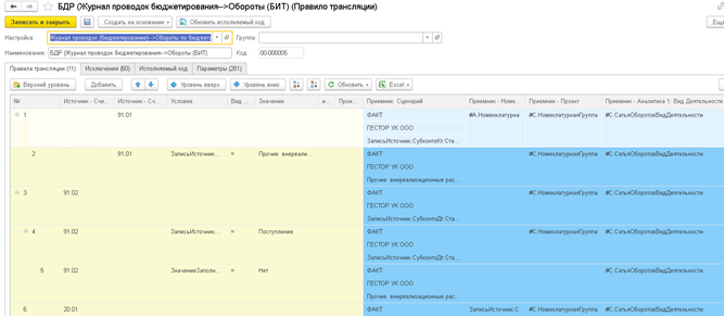 Автоматизирована трансляция операций на план счетов МСФО. При использовании механизма транзакции операций из РСБУ в документы МСФО устанавливается соответствие проводок и соответствие счетов. Раньше для сбора и корректировок данных, полученных из бухгалтерского учёта, использовали Еxcel. Причем отражение операций происходит автоматически согласно настройкам соответствия планов счетов РСБУ и МСФО. Это позволяет корректно и без ошибок собирать управленческий баланс.