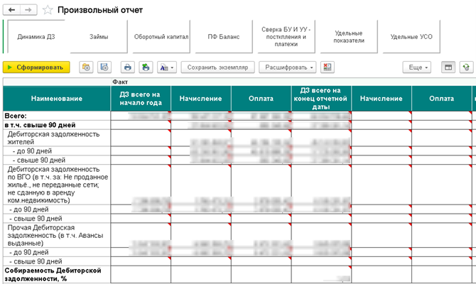 Создали произвольный отчёт по динамике дебиторской задолженности и оборотному капиталу. Этот отчёт показывает детальную аналитику по показателям. Для формирования отчётов настроили сбор фактических данных по краткосрочной и долгосрочной дебиторской задолженности с выделением внутригрупповых объектов. Это важно было сделать, чтобы при консолидации бюджетов не искажались данные об эффективности и финансовом состоянии в целом.