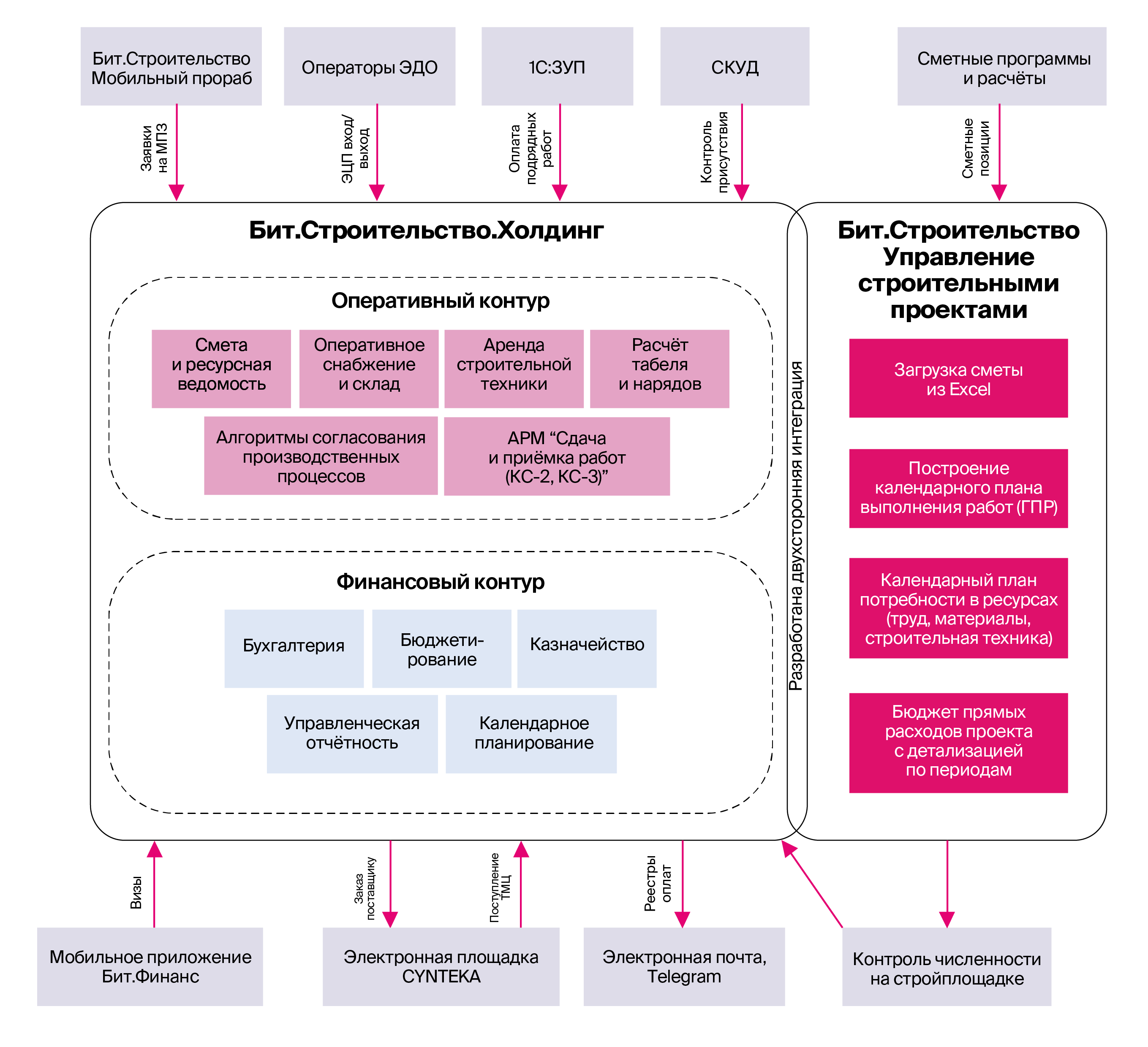 Внедрены два мобильных приложения (Бит.Финанс и Мобильный прораб) для согласования документации и планирования обеспечения объектов строительства ресурсами, что улучшило коммуникацию и оперативность принятия решений.