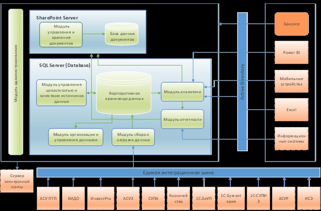 - Автоматизация процесса получения статистической и аналитической отчётности по данным, накапливаемым и хранящимся в разнородных информационных системах, таких как: