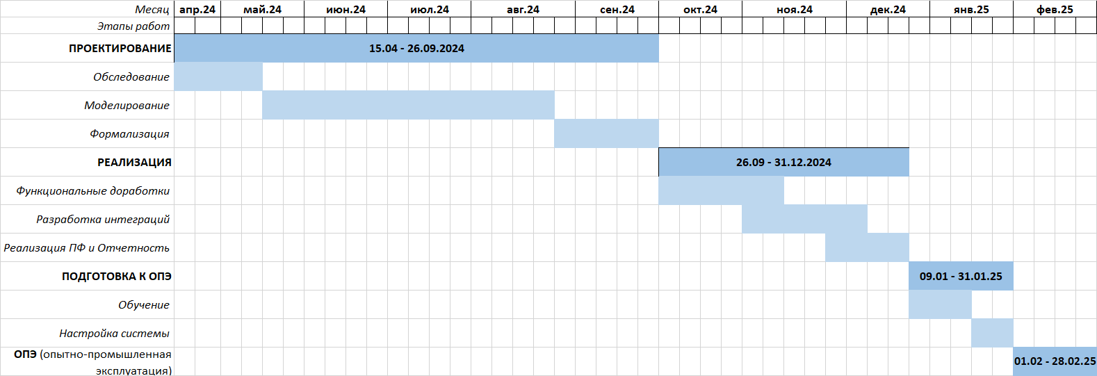 - Сроки выполнения проекта