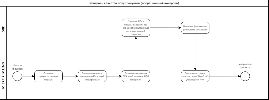 Перевод процессов производственного и выходного контроля в единую систему за счет реализации двухстороннего обмена между производственной системой и системой оперативного контура: из производственной системы в систему оперативного учета выгружается информация о производственных операциях, которые являются основанием для проведения контроля качества, в обратную сторону выгружаются данные о назначенных видах проверки на производственных операциях (для микробиологического контроля.