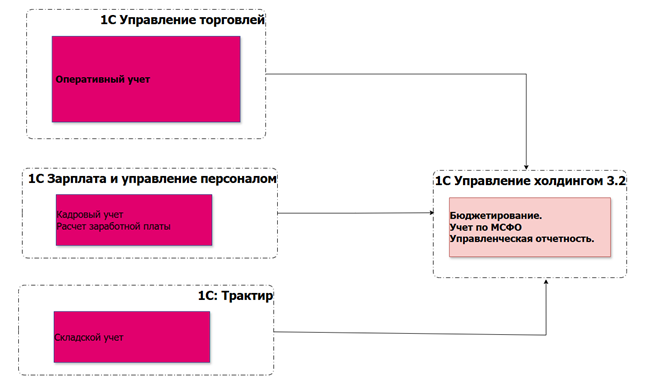 В целях консолидации данных бухгалтерского и управленческого учёта в единой системе, повышения прозрачности данных, возможности отслеживания первичной документации руководством компании было принято решение по переводу управленческого учёта на современную, актуально обновляемую платформу «1С:Управление холдингом 3.2».