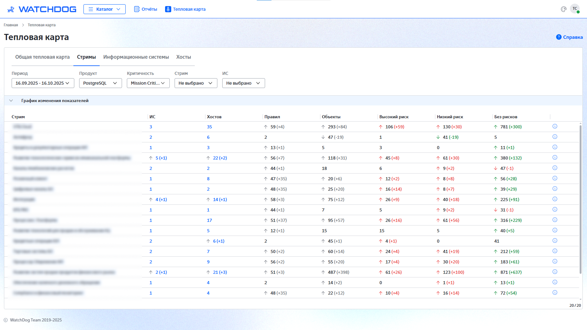 Формализовать паттерны сопровождения Инфраструктуры, Надежности, ИБ, Архитектуры в формате регулярного контроля чек-листов. С возможность отслеживать в динамике изменения для Стримов, ИС, критичностей в отдельном разделе “Тепловая Карта”.
