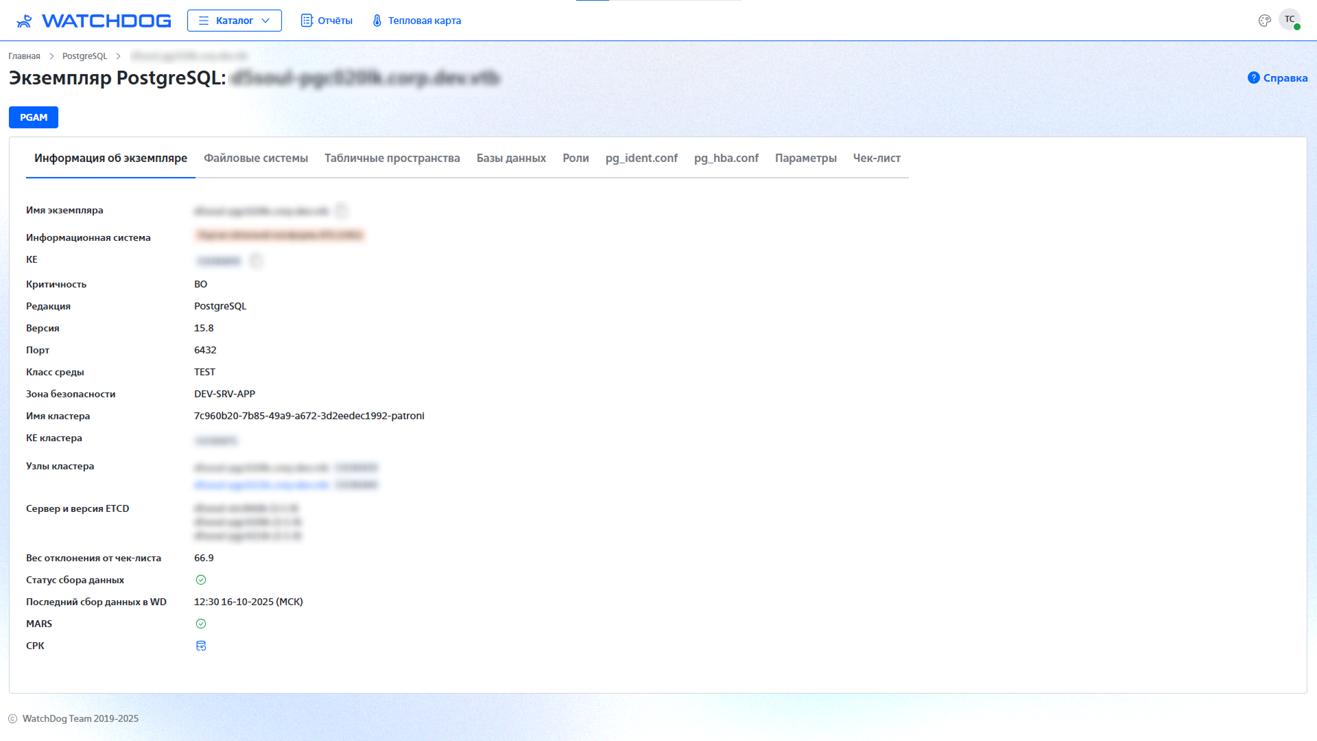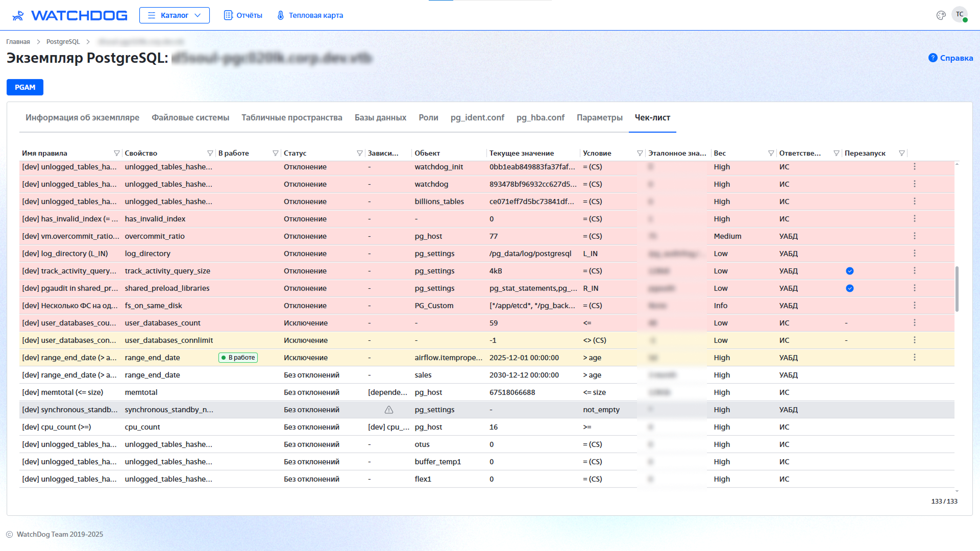 Сервис WatchDog (включая весь инструментарий) – прежде всего, закрытие нужд и потребностей dba, которые ежедневно выполняют типовые операции, решают инциденты, участвуют в ПСИ. Созданный dba для dba, прошедший путь от “БД инвентаризации” до полноценного “Портала” Надежности, ИБ, Архитектуры, представляет собой регулярный сбор всех параметров, их обработку (включая вычисления), вывод в удобный интерфейс. С возможностью “брать в работу”, “принимать в исключения”, настройками оповещений.
