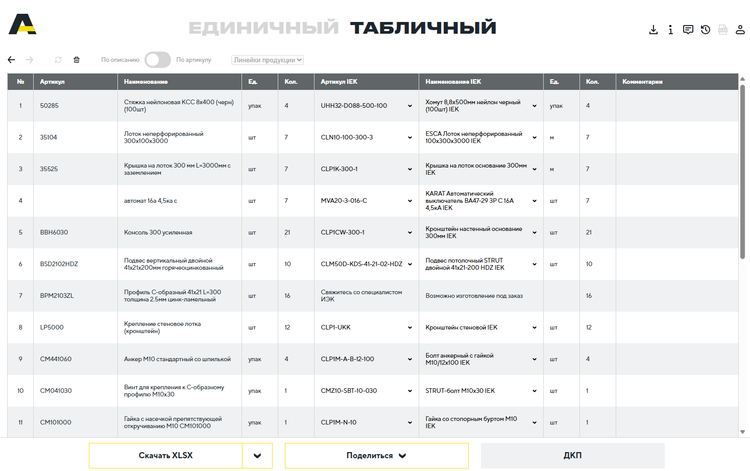 Разрабатываемый сервис предоставляет пользователям (как внутренним сотрудникам, так и внешним партнерам) возможность автоматизированного подбора электротехнического оборудования по исходным данным в произвольном формате: от PDF-спецификаций и XLS-таблиц до однолинейных схем и изображений.