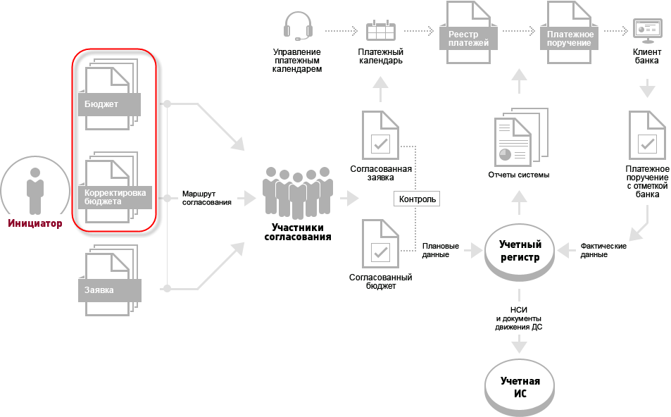 Проработаны и заведены единые для всех организаций статьи оборотов по бюджету, что позволило обеспечить единую структуру данных для формирования отчетности по движению денежных средств (БДДС, платежный календарь и др.) и контроля исполнения бюджета, а также возможность автоматического распределения платежей по нужным статьям оборотов, что важно для контроля лимитов, анализа исполнения бюджета и формирования заявок на расход денежных средств.