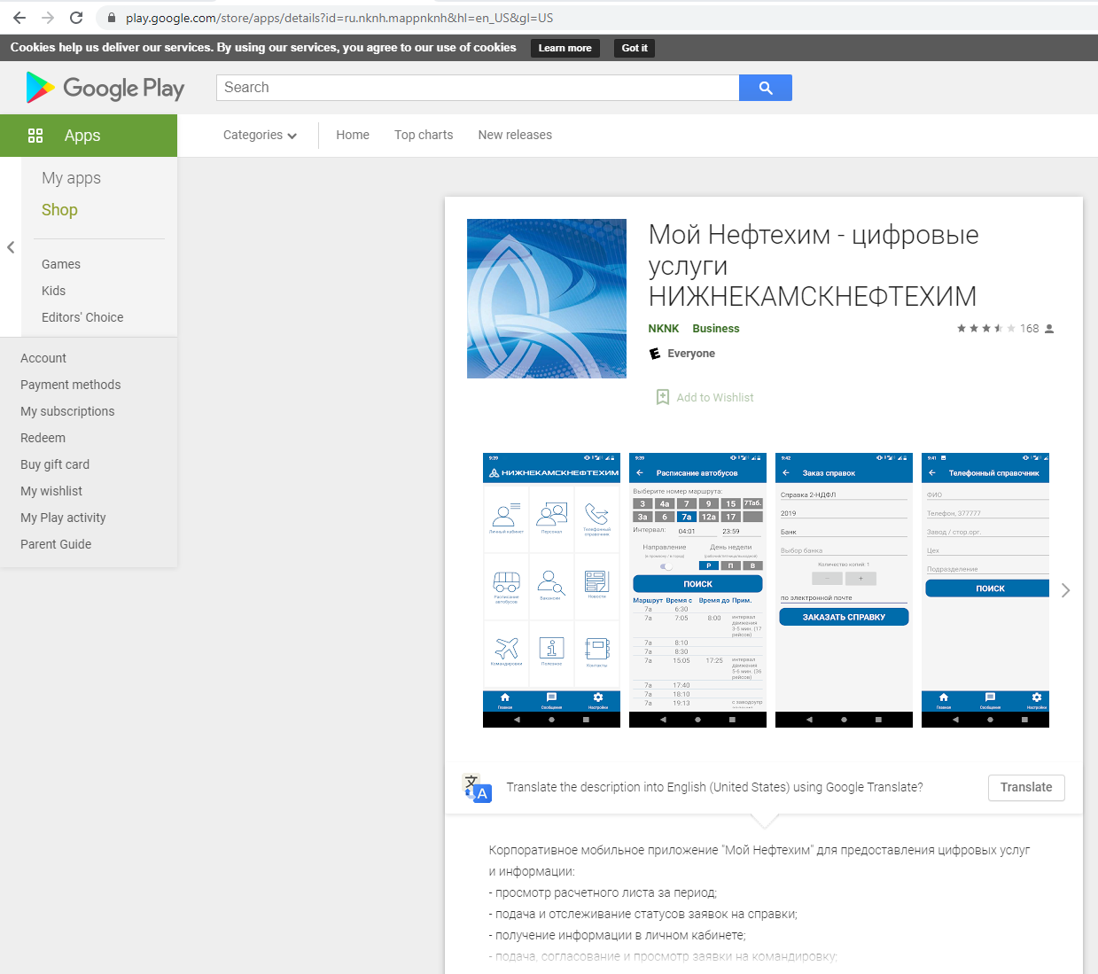 - В ПАО «Нижнекамскнефтехим» разработано мобильное приложение «Мой Нефтехим», которым кроме сотрудников компании, могут воспользоваться все желающие. Приложение имеет общедоступные разделы, включающие расписание движения автобусов, дайджест-новости компании и актуальные вакансии. Для сотрудников компании доступны дополнительные сервисы: заказ справок и заверенных копий документов, просмотр расчетных листков по зарплате, доступ к корпоративному телефонному справочнику и т.п.Работники компании активно подключаются к приложению, получая логин и пароль к личному кабинету. Установив «Мой Нефтехим», нефтехимики могут пользоваться всеми преимуществами, которые предоставляют информационные системы компанииПриложение является единой точкой входа для сотрудника и объединяет в себе разнообразные информационные системы ПАО "Нижнекамскнефтехим" и его дочерних обществ общей численностью свыше 17 000 сотрудников.При авторизации доступны следующие разделы:- просмотр расчетных листков, данных по отпускам и отгулам- заказ справок, выписок и копий документов (2-НДФЛ, на визу, об алиментах и т.д.)- инфосистема обеспеченности СИЗ (нормы выдачи, сроки получения, антропометрические данные)- корпоративный телефонный справочник- управление служебными командировками (подача заявки, отслеживание статуса, согласование заявки)- раздел вопросов и ответов по управлению персоналом (социальные льготы, начисление заработной платы, больничный лист, изменение личных данных или замена паспорта)- данные по фактическому рабочему времени, в т.ч. по подчиненному персоналу- данные по стажу работы, карьерной лестнице, по имеющимся наградам и взысканиям- данные по льготной корпоративной ипотеке